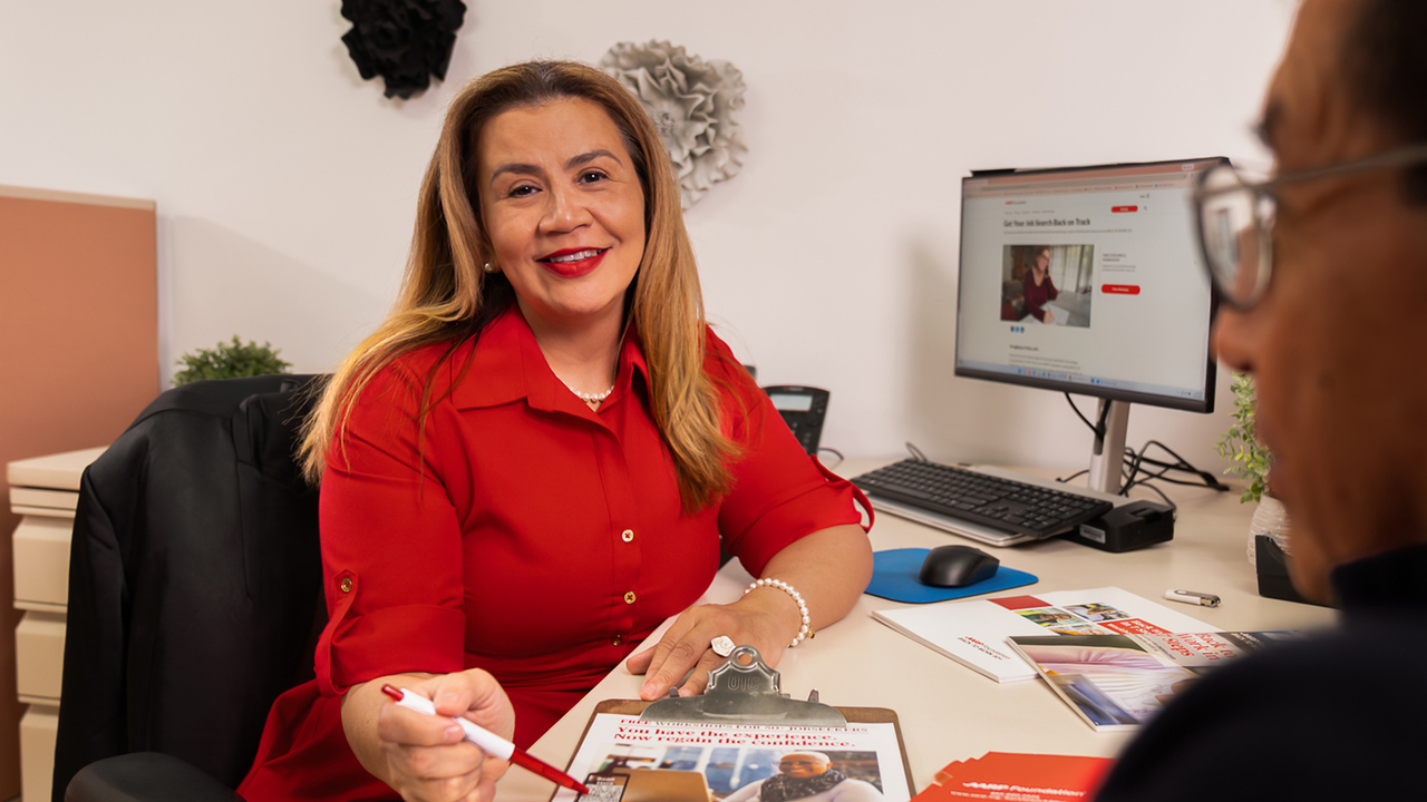 Description: After facing unemployment and homelessness, America Arevalo now works at a nonprofit supporting AARP Foundation’s BACK TO WORK 50+ program, using her experience to help older workers.